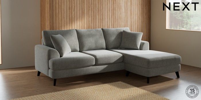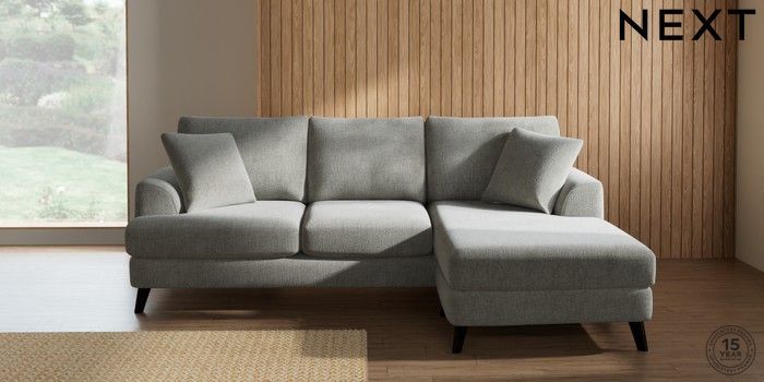 7.2.10 Parker Small Sofa Chaise - Universal Chunky Chenille Light Grey Low Retro Tapered - Dark | Made Click here to use our website with more accessibility support, for example screen readers