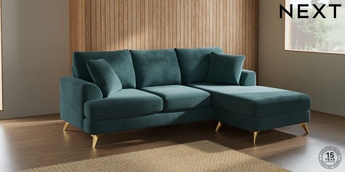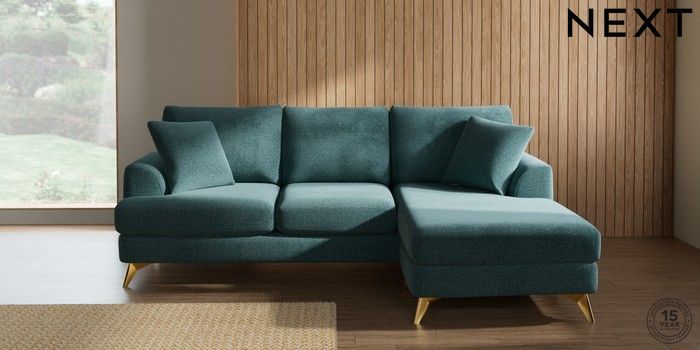 7.2.10 Parker Small Sofa Chaise - Universal Chunky Chenille Mid Teal Green High Metal - Brass | Made Click here to use our website with more accessibility support, for example screen readers
