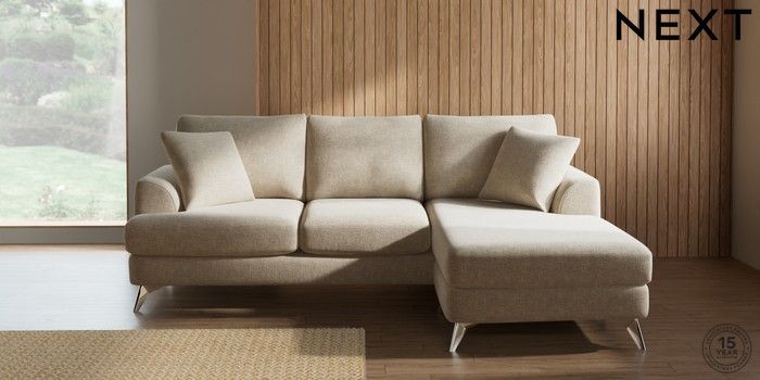 7.2.10 Parker Small Sofa Chaise - Universal Chunky Weave Cream High Metal - Chrome | Made Click here to use our website with more accessibility support, for example screen readers