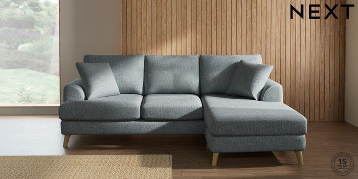 7.2.10 Parker Small Sofa Chaise - Universal Chunky Weave Mid Blue Low Retro Tapered - Light | Made Click here to use our website with more accessibility support, for example screen readers