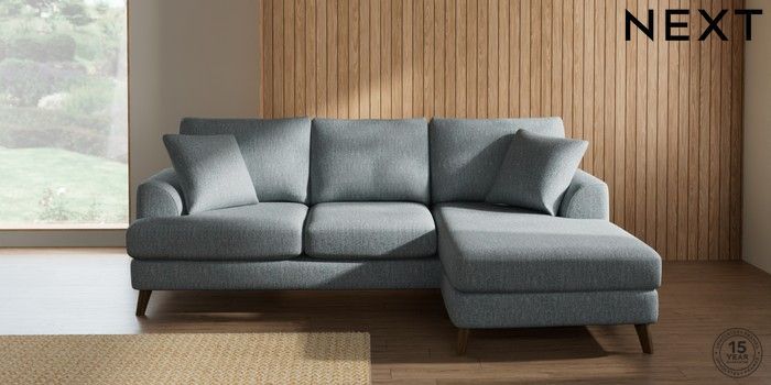 7.2.10 Parker Small Sofa Chaise - Universal Chunky Weave Mid Blue Low Retro Tapered - Mid | Made Click here to use our website with more accessibility support, for example screen readers