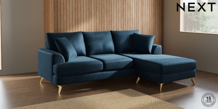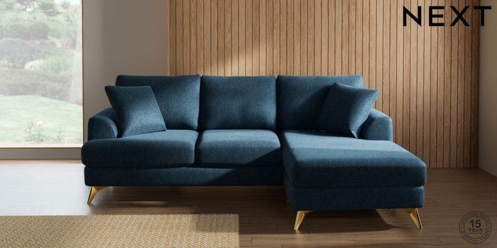 7.2.10 Parker Small Sofa Chaise - Universal Cotswold Chenille Dark Blue High Metal - Brass | Made Click here to use our website with more accessibility support, for example screen readers
