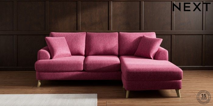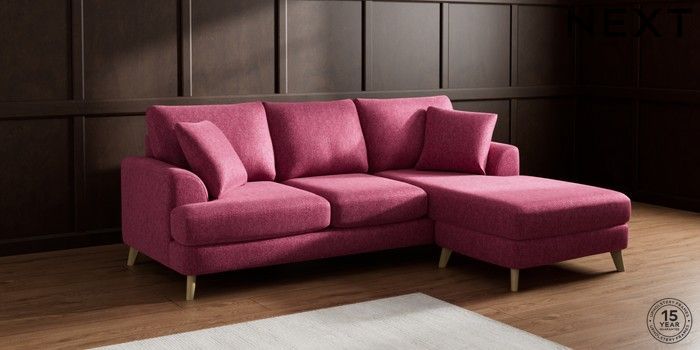 7.2.10 Parker Small Sofa Chaise - Universal Cotswold Chenille Dark Raspberry Pink Low Retro Tapered - Light | Made Click here to use our website with more accessibility support, for example screen readers