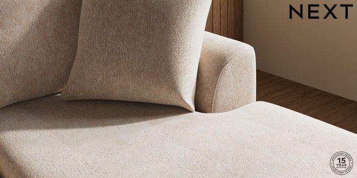 7.2.10 Parker Small Sofa Chaise - Universal Cotswold Chenille Light Natural Low Retro Tapered - Light | Made Click here to use our website with more accessibility support, for example screen readers