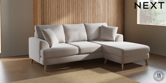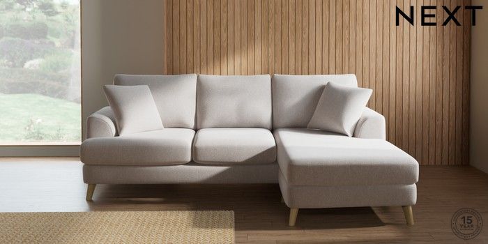 7.2.10 Parker Small Sofa Chaise - Universal Cotswold Chenille Oyster Low Retro Tapered - Light | Made Click here to use our website with more accessibility support, for example screen readers