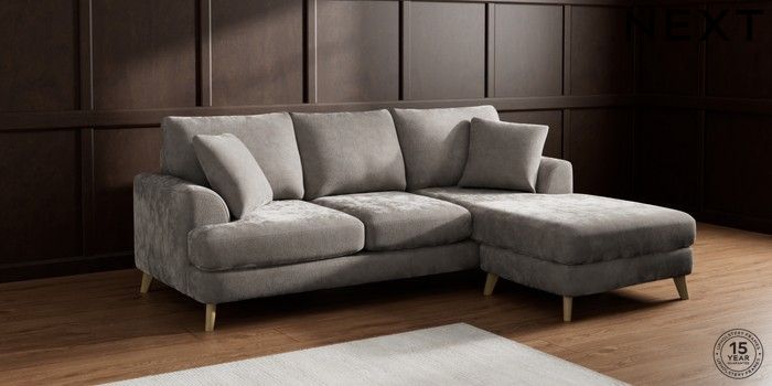 7.2.10 Parker Small Sofa Chaise - Universal Distressed Velour French Grey Low Retro Tapered - Light | Made Click here to use our website with more accessibility support, for example screen readers