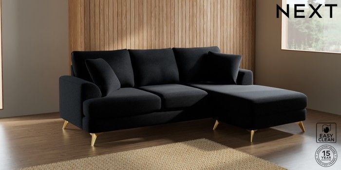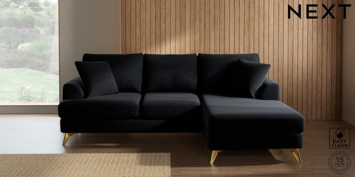 7.2.10 Parker Small Sofa Chaise - Universal Fine Chenille Easy Clean Black High Metal - Brass | Made Click here to use our website with more accessibility support, for example screen readers