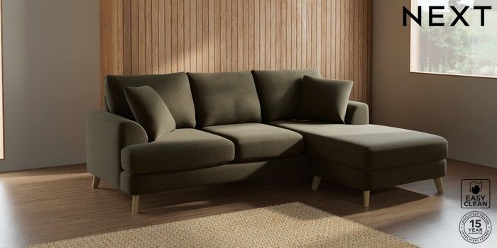 7.2.10 Parker Small Sofa Chaise - Universal Fine Chenille Easy Clean Dark Moss Green Low Retro Tapered - Light | Made Click here to use our website with more accessibility support, for example screen readers