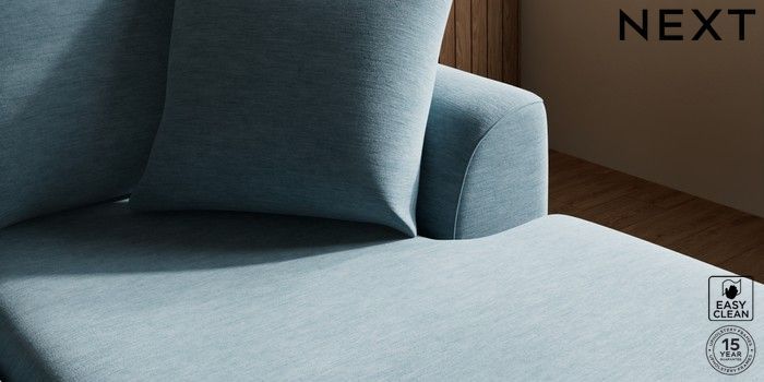 7.2.10 Parker Small Sofa Chaise - Universal Fine Chenille Easy Clean Mid Blue High Metal - Chrome | Made Click here to use our website with more accessibility support, for example screen readers