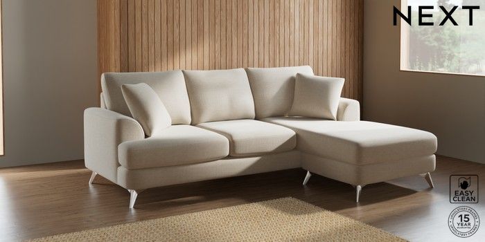 7.2.10 Parker Small Sofa Chaise - Universal Fine Chenille Easy Clean Oyster High Metal - Chrome | Made Click here to use our website with more accessibility support, for example screen readers