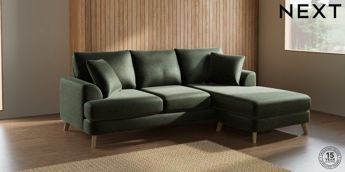 7.2.10 Parker Small Sofa Chaise - Universal Luxe Chenille Mid Green Low Retro Tapered - Light | Made Click here to use our website with more accessibility support, for example screen readers