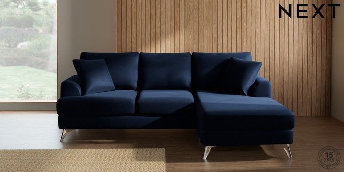 7.2.10 Parker Small Sofa Chaise - Universal Luxe Chenille Navy Blue High Metal - Chrome | Made Click here to use our website with more accessibility support, for example screen readers
