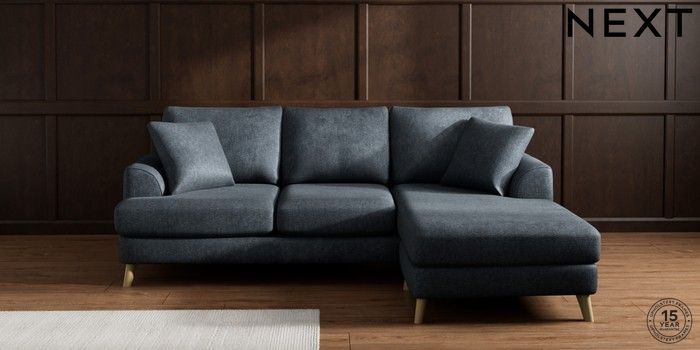 7.2.10 Parker Small Sofa Chaise - Universal Plush Chenille Slate Blue Low Retro Tapered - Light | Made Click here to use our website with more accessibility support, for example screen readers