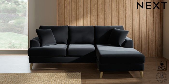 7.2.10 Parker Small Sofa Chaise - Universal Plush Velvet Easy Clean Charcoal Grey Low Retro Tapered - Light | Made Click here to use our website with more accessibility support, for example screen readers