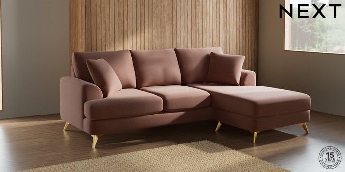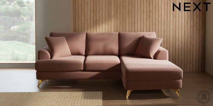 7.2.10 Parker Small Sofa Chaise - Universal Relaxed Linen Look Light Rust Brown High Metal - Brass | Made Click here to use our website with more accessibility support, for example screen readers
