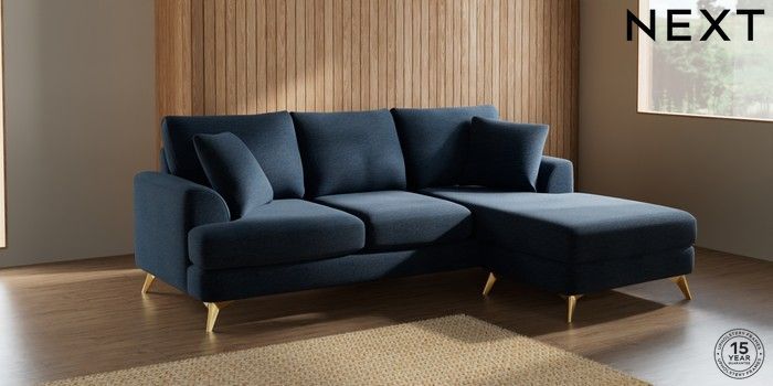7.2.10 Parker Small Sofa Chaise - Universal Ripple Chenille Dark Blue High Metal - Brass | Made Click here to use our website with more accessibility support, for example screen readers