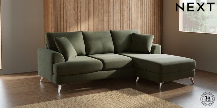 7.2.10 Parker Small Sofa Chaise - Universal Ripple Chenille Mid Moss Green High Metal - Chrome | Made Click here to use our website with more accessibility support, for example screen readers