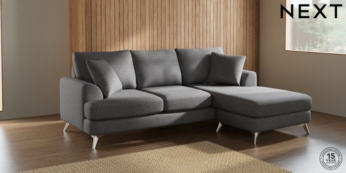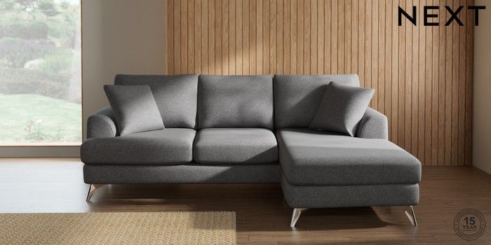 7.2.10 Parker Small Sofa Chaise - Universal Studio Chenille Mid Grey High Metal - Chrome | Made Click here to use our website with more accessibility support, for example screen readers
