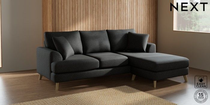 7.2.10 Parker Small Sofa Chaise - Universal Tweedy Blend Easy Clean Charcoal Grey Low Retro Tapered - Light | Made Click here to use our website with more accessibility support, for example screen readers