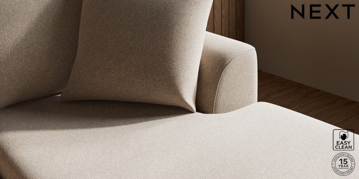 7.2.10 Parker Small Sofa Chaise - Universal Tweedy Blend Easy Clean Light Dove Natural Low Retro Tapered - Light | Made Click here to use our website with more accessibility support, for example screen readers