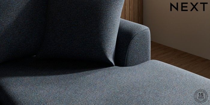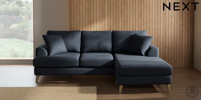 7.2.10 Parker Small Sofa Chaise - Universal Tweedy Chenille Navy Blue Low Retro Tapered - Light | Made Click here to use our website with more accessibility support, for example screen readers