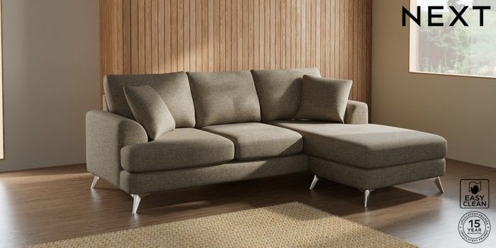 7.2.10 Parker Small Sofa Chaise - Universal Woven Chenille Easy Clean Mid Natural High Metal - Chrome | Made Click here to use our website with more accessibility support, for example screen readers