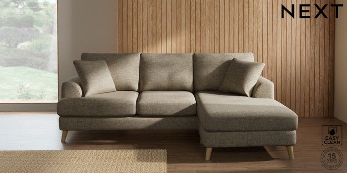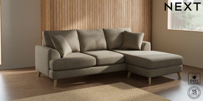 7.2.10 Parker Small Sofa Chaise - Universal Woven Chenille Easy Clean Mid Natural Low Retro Tapered - Light | Made Click here to use our website with more accessibility support, for example screen readers