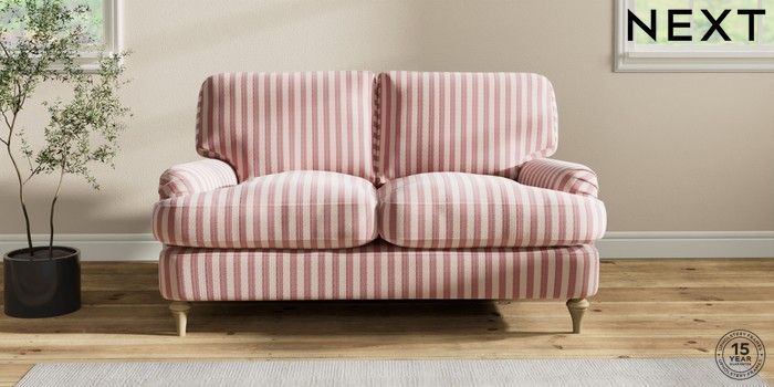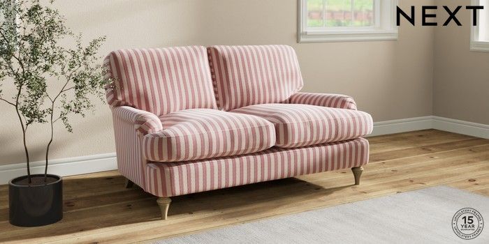 7.2.10 Sadie Deep Relaxed Sit 2 Seater Small Sofa Bold Chenille Stripe Dark Pink High Slim Turned - Light | Made Click here to use our website with more accessibility support, for example screen readers