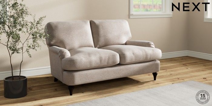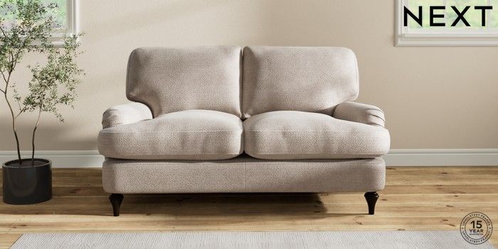 7.2.10 Sadie Deep Relaxed Sit 2 Seater Small Sofa Boucle Chenille Light Natural High Slim Turned - Dark | Made Click here to use our website with more accessibility support, for example screen readers