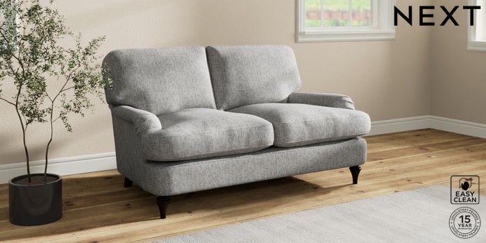7.2.10 Sadie Deep Relaxed Sit 2 Seater Small Sofa Chunky Boucle Easy Clean Light Grey High Slim Turned - Dark | Made Click here to use our website with more accessibility support, for example screen readers