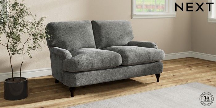 7.2.10 Sadie Deep Relaxed Sit 2 Seater Small Sofa Chunky Chenille Dark Grey High Slim Turned - Dark | Made Click here to use our website with more accessibility support, for example screen readers