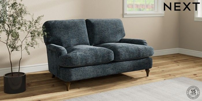 7.2.10 Sadie Deep Relaxed Sit 2 Seater Small Sofa Chunky Chenille Dark Navy Blue High Slim Turned - Mid | Made Click here to use our website with more accessibility support, for example screen readers