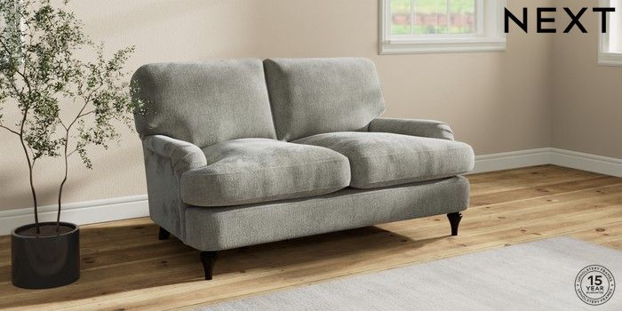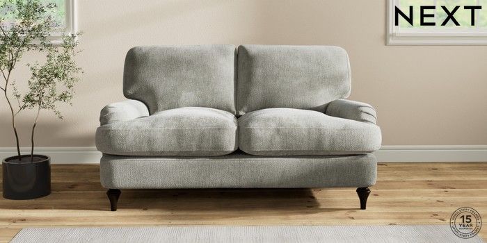 7.2.10 Sadie Deep Relaxed Sit 2 Seater Small Sofa Chunky Chenille Light Grey High Slim Turned - Dark | Made Click here to use our website with more accessibility support, for example screen readers