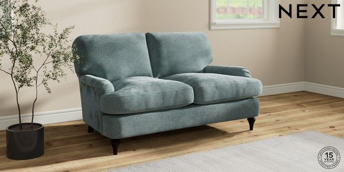 7.2.10 Sadie Deep Relaxed Sit 2 Seater Small Sofa Chunky Chenille Light Teal Green High Slim Turned - Dark | Made Click here to use our website with more accessibility support, for example screen readers