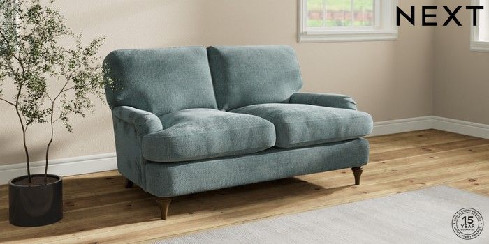 7.2.10 Sadie Deep Relaxed Sit 2 Seater Small Sofa Chunky Chenille Light Teal Green High Slim Turned - Mid | Made Click here to use our website with more accessibility support, for example screen readers