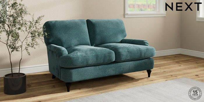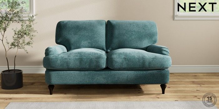 7.2.10 Sadie Deep Relaxed Sit 2 Seater Small Sofa Chunky Chenille Mid Teal Green High Slim Turned - Dark | Made Click here to use our website with more accessibility support, for example screen readers