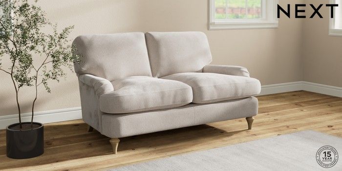 7.2.10 Sadie Deep Relaxed Sit 2 Seater Small Sofa Chunky Chenille Oyster High Slim Turned - Light | Made Click here to use our website with more accessibility support, for example screen readers