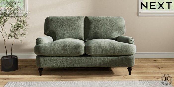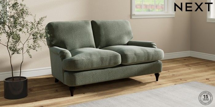 7.2.10 Sadie Deep Relaxed Sit 2 Seater Small Sofa Chunky Texture Mid Forest Green High Slim Turned - Dark | Made Click here to use our website with more accessibility support, for example screen readers