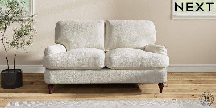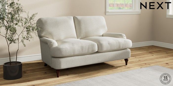 7.2.10 Sadie Deep Relaxed Sit 2 Seater Small Sofa Chunky Texture Oyster High Slim Turned - Dark Brown | Made Click here to use our website with more accessibility support, for example screen readers