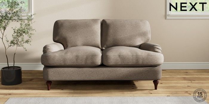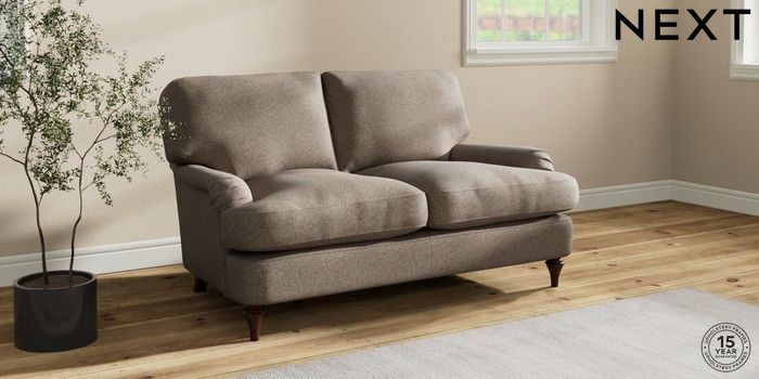 7.2.10 Sadie Deep Relaxed Sit 2 Seater Small Sofa Chunky Weave Dark Natural High Slim Turned - Dark Brown | Made Click here to use our website with more accessibility support, for example screen readers