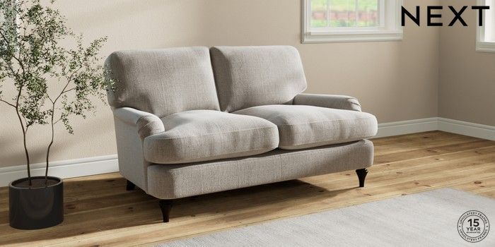 7.2.10 Sadie Deep Relaxed Sit 2 Seater Small Sofa Chunky Weave Dove Grey High Slim Turned - Dark | Made Click here to use our website with more accessibility support, for example screen readers