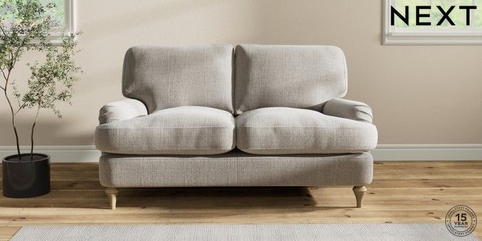 7.2.10 Sadie Deep Relaxed Sit 2 Seater Small Sofa Chunky Weave Dove Grey High Slim Turned - Light | Made Click here to use our website with more accessibility support, for example screen readers