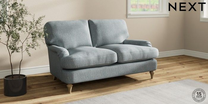 7.2.10 Sadie Deep Relaxed Sit 2 Seater Small Sofa Chunky Weave Mid Blue High Slim Turned - Light | Made Click here to use our website with more accessibility support, for example screen readers