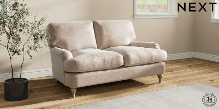 7.2.10 Sadie Deep Relaxed Sit 2 Seater Small Sofa Cotswold Chenille Light Natural High Slim Turned - Light | Made Click here to use our website with more accessibility support, for example screen readers