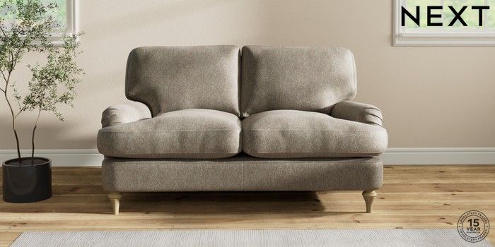 7.2.10 Sadie Deep Relaxed Sit 2 Seater Small Sofa Cotswold Chenille Mid Mink Brown High Slim Turned - Light | Made Click here to use our website with more accessibility support, for example screen readers