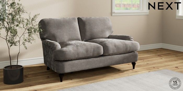 7.2.10 Sadie Deep Relaxed Sit 2 Seater Small Sofa Distressed Velour French Grey High Slim Turned - Dark | Made Click here to use our website with more accessibility support, for example screen readers