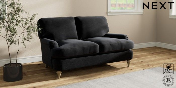 7.2.10 Sadie Deep Relaxed Sit 2 Seater Small Sofa Fine Chenille Easy Clean Black High Slim Turned - Light | Made Click here to use our website with more accessibility support, for example screen readers