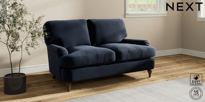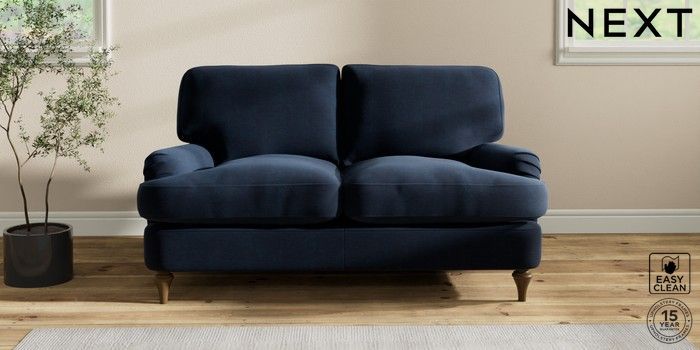 7.2.10 Sadie Deep Relaxed Sit 2 Seater Small Sofa Fine Chenille Easy Clean Dark Navy Blue High Slim Turned - Mid | Made Click here to use our website with more accessibility support, for example screen readers