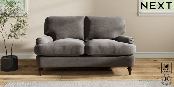 7.2.10 Sadie Deep Relaxed Sit 2 Seater Small Sofa Fine Chenille Easy Clean Dark Smoke Grey High Slim Turned - Dark Brown | Made Click here to use our website with more accessibility support, for example screen readers