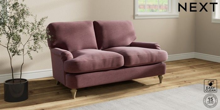 7.2.10 Sadie Deep Relaxed Sit 2 Seater Small Sofa Fine Chenille Easy Clean Mid Mulberry Purple High Slim Turned - Light | Made Click here to use our website with more accessibility support, for example screen readers
